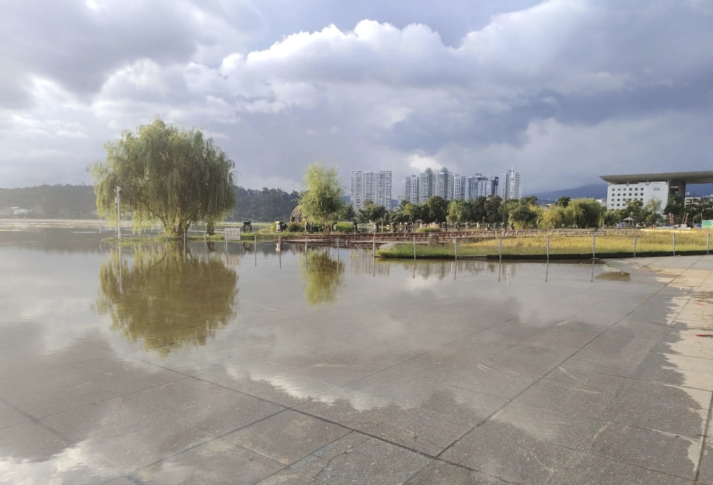 在社交平台上,有网友从今年8月份就开始发布视频称,洱海水位上涨,已漫至外围路面,全民健身中心成了孩子们的玩水乐园。