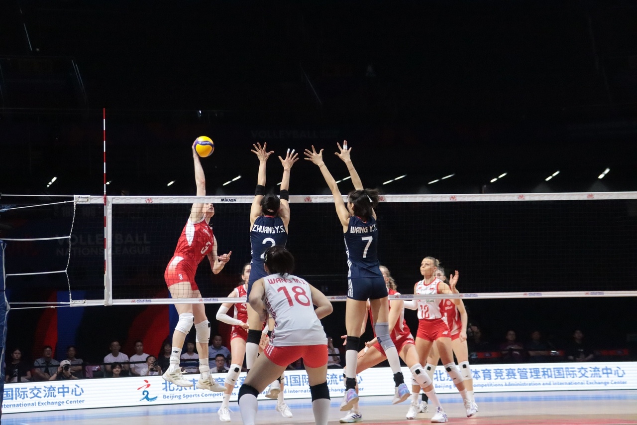 首局比赛,中国女排和波兰女排攻防有来有回,比分交替上升,两队在中局阶段战至18:18后,中国队一传出现波动,自身失误开始增多,波兰队抓住机会迅速反超比分,拿下首局胜利。